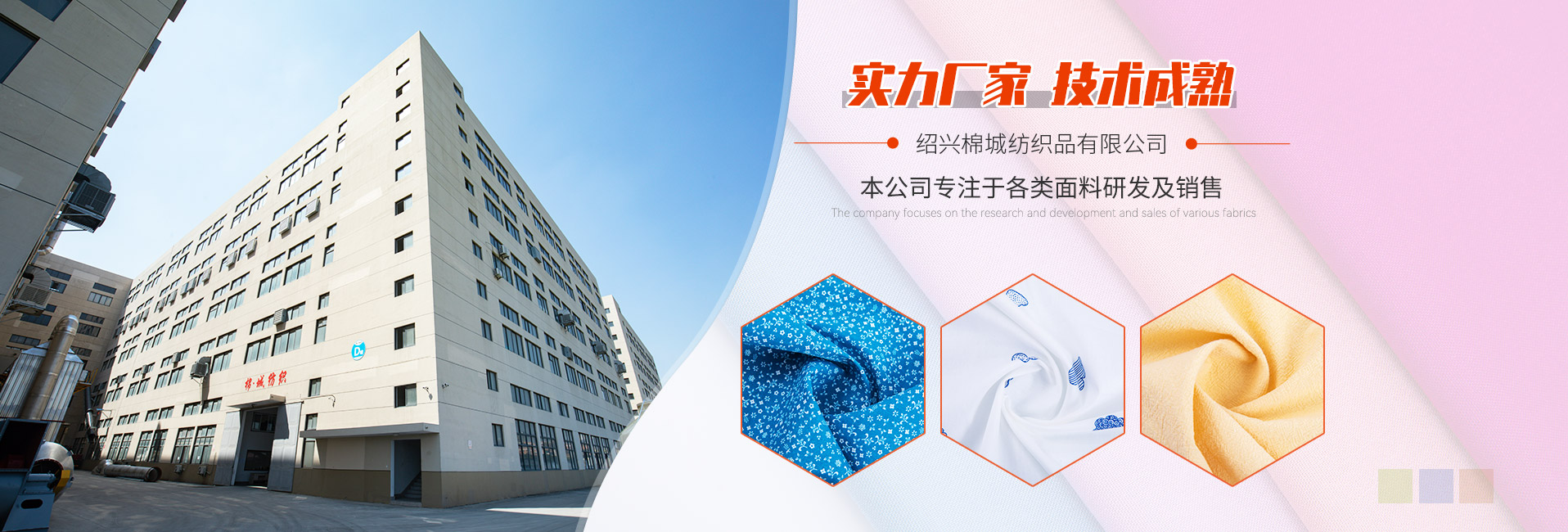 紹興棉城紡織品有限公司地處亞洲最大的紡織品交易中心--中國(guó)輕紡城,距蕭山國(guó)際機(jī)場(chǎng)35分鐘路程。地理位置優(yōu)越、交通便捷。是一家專業(yè)從事面料開發(fā)、銷售的綜合性紡織品公司。 公司擁有自營(yíng)進(jìn)出口權(quán),我們公司的主要產(chǎn)品:梭織全棉、人棉、全棉彈力布、半漂印花、染色及后加工等等。